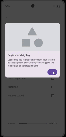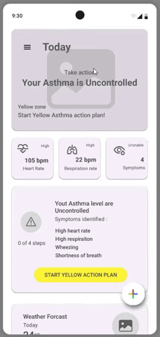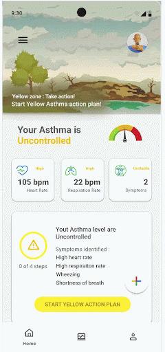 In this scenario, the app detects unmanageable asthma symptoms. Participants will follow the steps of the yellow action plan to regain control of their asthma.